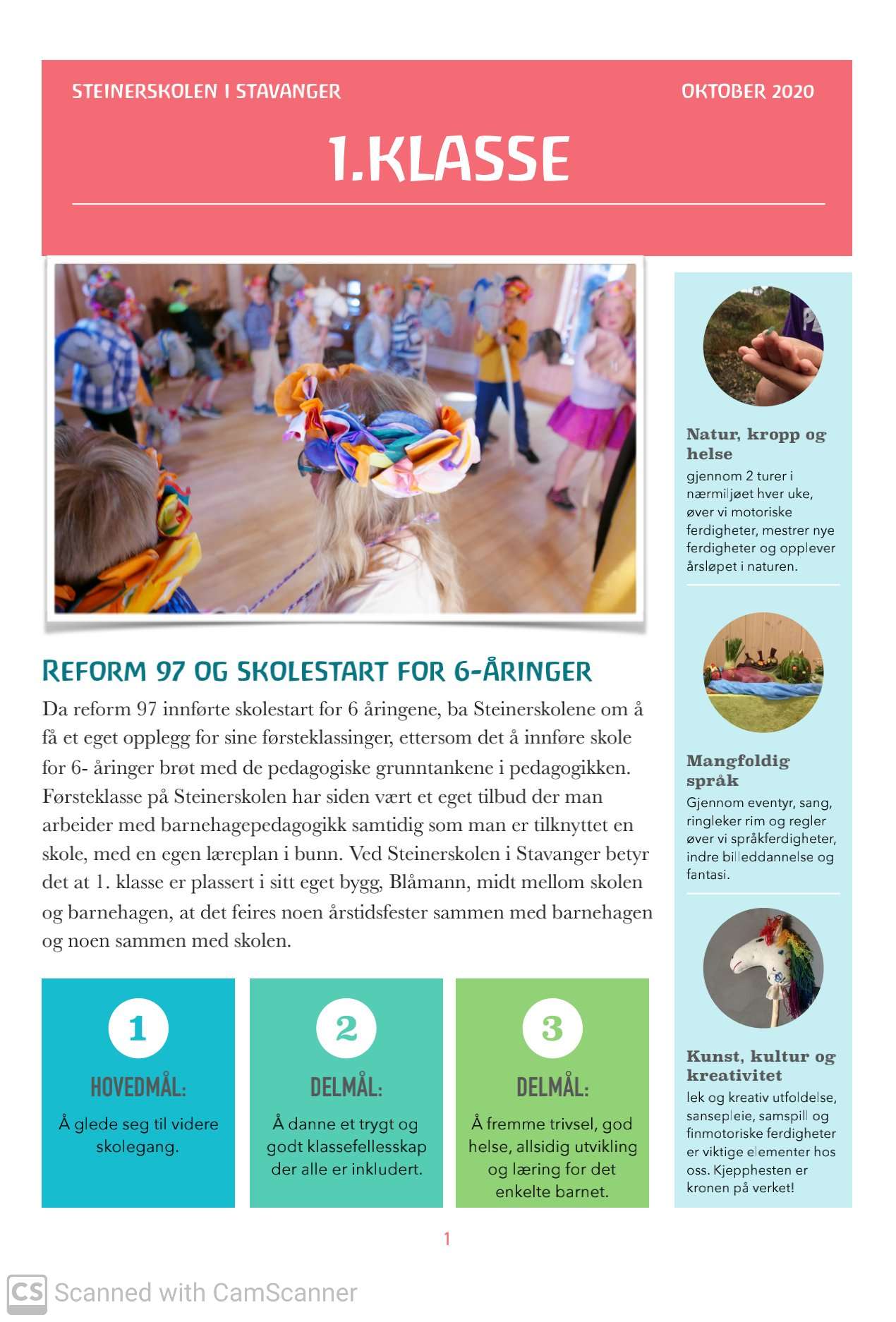 1. Steinerskolen setter 6-åringen i fokus og tilbyr et førskolepedagogisk opplegg i 1. klasse.