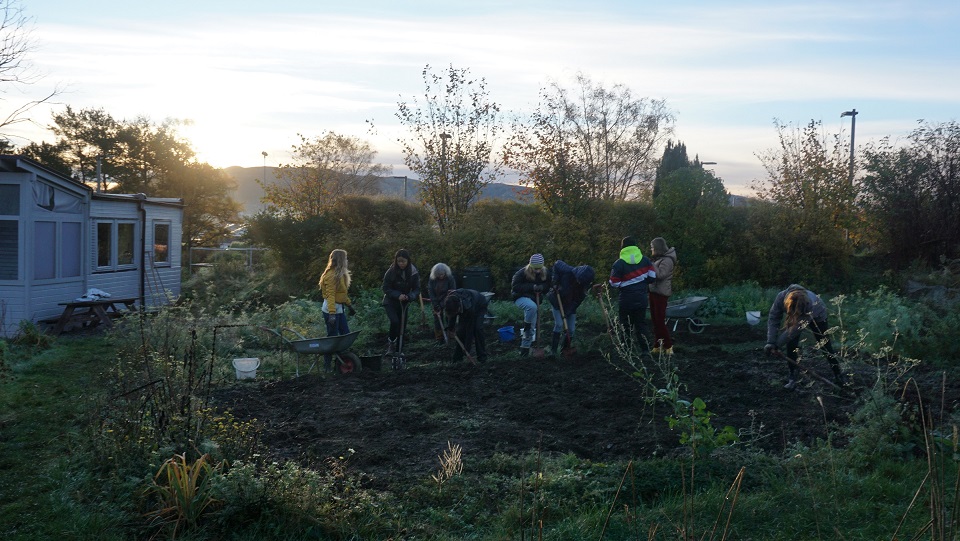 BILDER FRA EN TO UKERS PERIODE MED 8. KLASSE HVOR ELEVENE LÆRTE Å LAGE KOMPOST OG SKAPTE LANDSKAPSKUNST:
